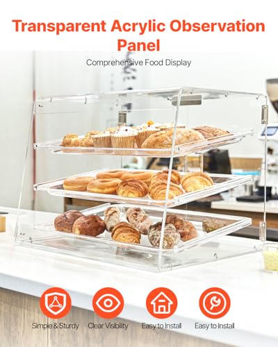 VEVOR Vitrina de pastelería, bandeja desmontable de 0.157 in, vitrina transparente y versátil para panadería con estructura de fijación de borde lateral, vitrina de panadería con puerta trasera
